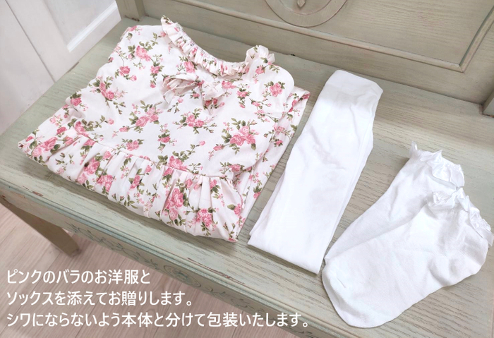 お洋服と、足元がよごれないようにソックスをセットにしてお届けします。