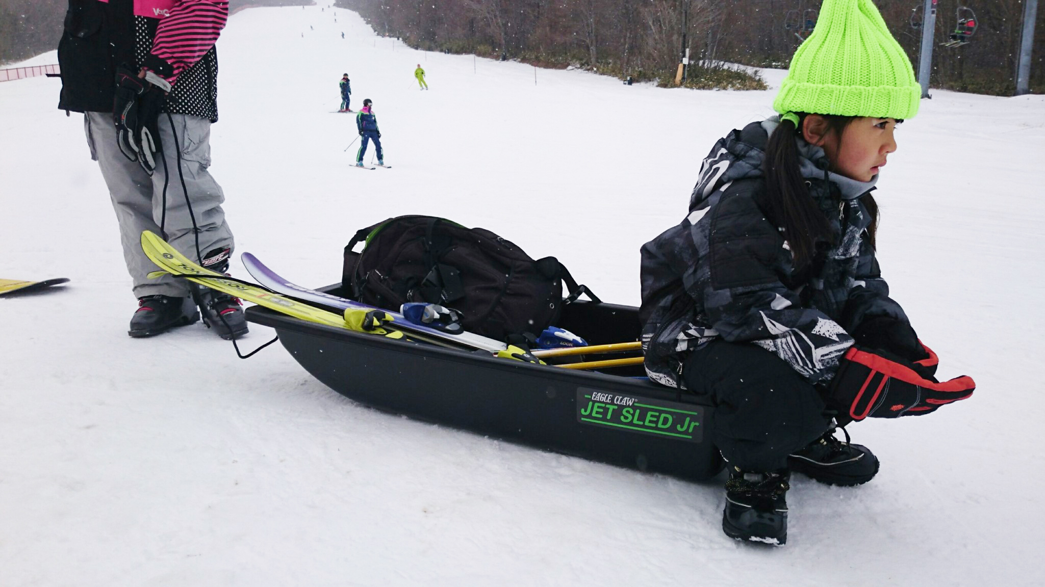 今まで日本にはなかった特大サイズの大型ソリ「JET SLED」は、毎年大変ご好評いただいており、多くのご注文をいただいております。