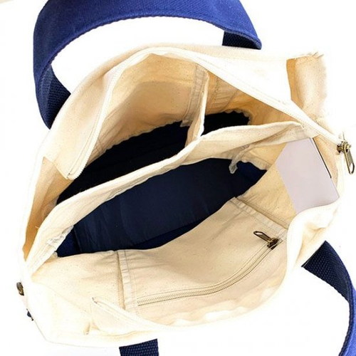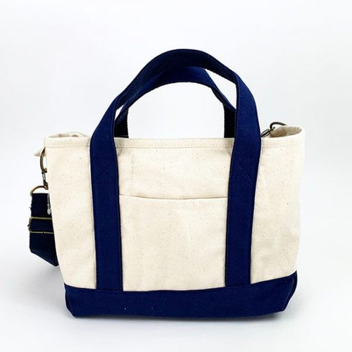 ネイビーカラーのこちらは、テントデザインのトートバッグです。よりシンプルさが増していて、男女兼用で使えますね。