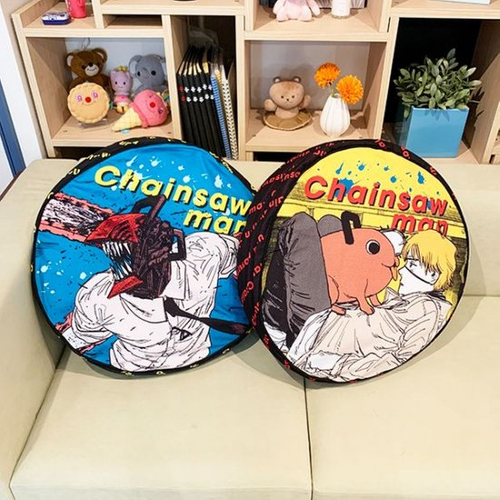 速報!新商品発売開始・大人気アニメチェンソーマンのラウンドクッション♪ビッグサイズで安定感も満点でインテリアにも◎