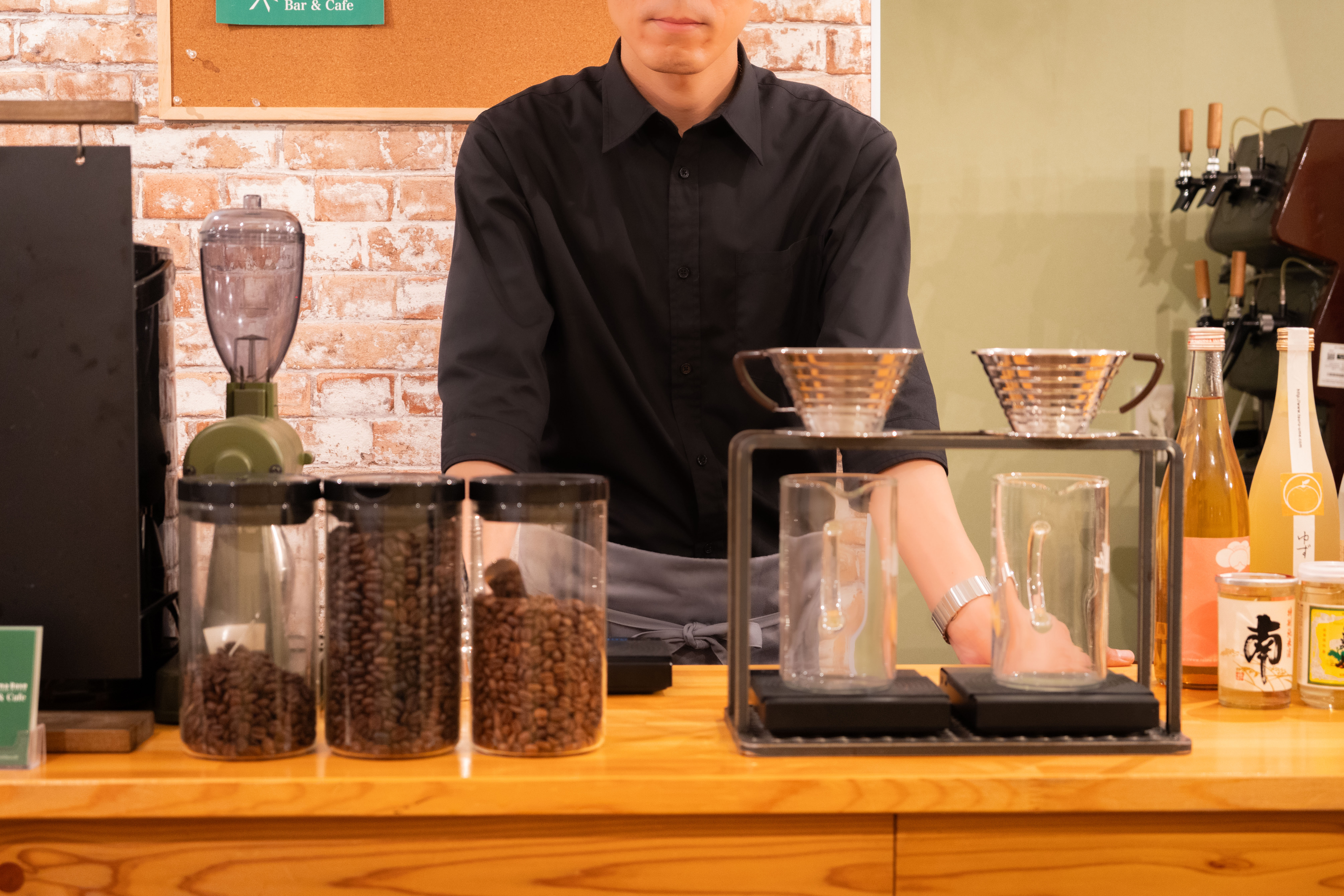 焙煎にこだわったドリップコーヒーや本格エスプレッソを使用したカフェラテ、ハーブティーやスイーツなど充実したカフェメニュー、厳選された日本酒、焼酎、ウイスキー、世界の瓶ビールなどのアルコール飲料がラインナップされます。
