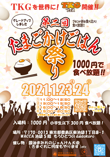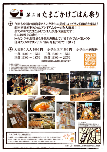 第2回たまごかけごはん祭りが、都内の「WACCA池袋5階 もうひとつのdaidokoro」で開催されます。