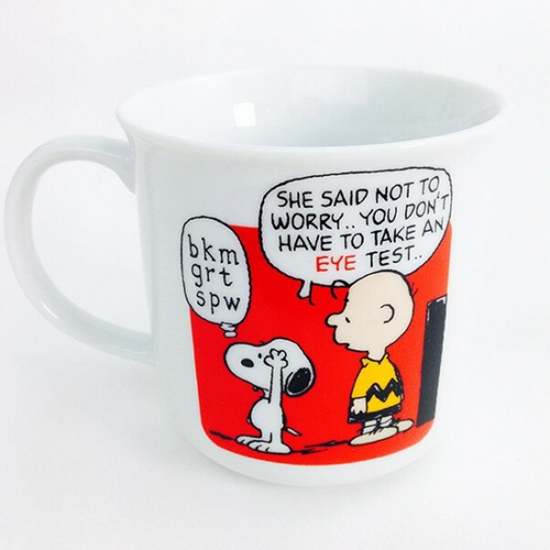 視力検査の練習をするスヌーピーがかわいいです♪どのイニシャルもストーリーがあって、見ているだけでも楽しいです。