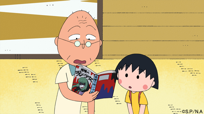 野口さんに怖い漫画を借りたまる子。野口さんのお兄さんはその怖さに思わず声をあげたという。借りたものの、置いておくだけでも怖いと思うまる子。ひとりで読めないまる子はおじいちゃんに読んでもらうのだが…?