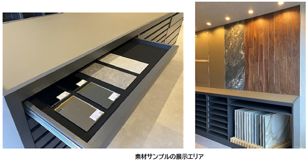 「想像力が膨らむ空間」と「素材選びを愉しむ時間」をテーマに、リフォームやリノベーションのプランをご提案する展示エリアと打ち合わせルームを設置しています。