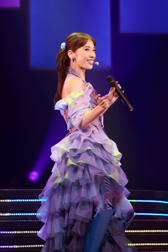 タイトルにもある通り、テーマカラーはブルー。このブルーが、時に海、時に空のイメージとなって、舞台全体を美しく彩る。また開幕前、幕間、終演後と、紗幕に明日海の直筆メッセージが映し出されるほか、明日海自身のナレーションで20年を振り返る趣向もあり、彼女の温かな人柄、手作りのぬくもりが感じられるコンサートとなっている。