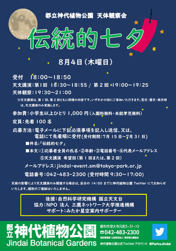 神代植物公園、毎回人気の天体観察会「伝統的七夕」8月4日開催。先着申込受付中♪