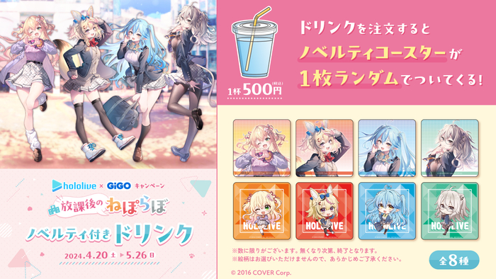 株式会社GENDA GiGO Entertainment(本社:東京都港区 代表取締役社長:二宮一浩 以下、当社)は、GiGOグループのお店におきまして2024年4月20日(土)より、カバー株式会社(本社:東京都港区、代表取締役社長:谷郷元昭)が運営する女性VTuberグループ「ホロライブ」とのコラボキャンペーン2弾「hololive×GiGO キャンペーン~放課後のねぽらぼ~」を開催いたします。