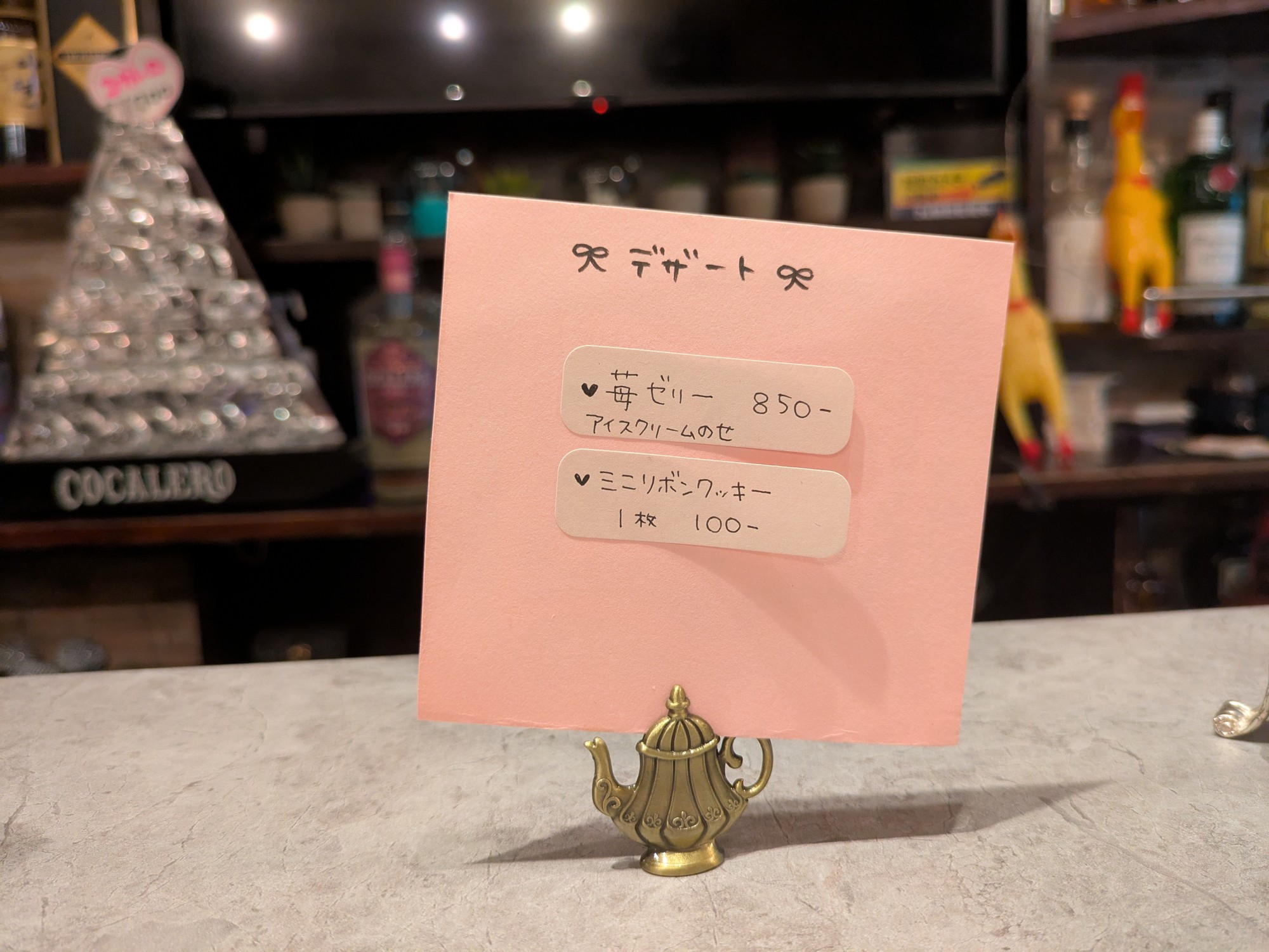 デザートは、パウンドケーキや“看板猫のアイスクリーム”など、店主のパティシエとしての技術を活かした本格スイーツが揃います。季節限定デザートとして「苺のゼリー(アイスクリーム添え)」も登場し、可愛らしいビジュアルと爽やかな味わいが楽しめます。