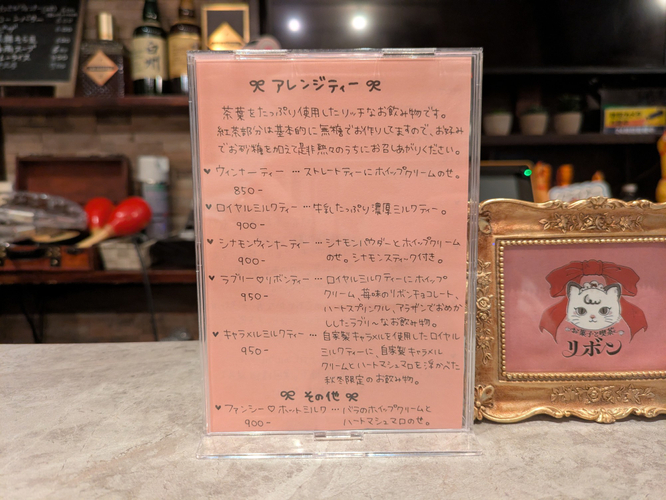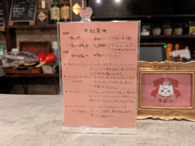 紅茶専門店として、定番からアレンジまで幅広いティーメニューをご用意。特に人気の「ラブリー❤︎リボンティー」は、おすすめの一杯です。
