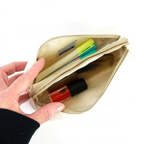 ダブル遣いのファスナーで収納力を誇る、ペンケースも入荷しました。2ヵ所に分けて収納できるので、ペンケースだけでなく用途もいろいろ♪