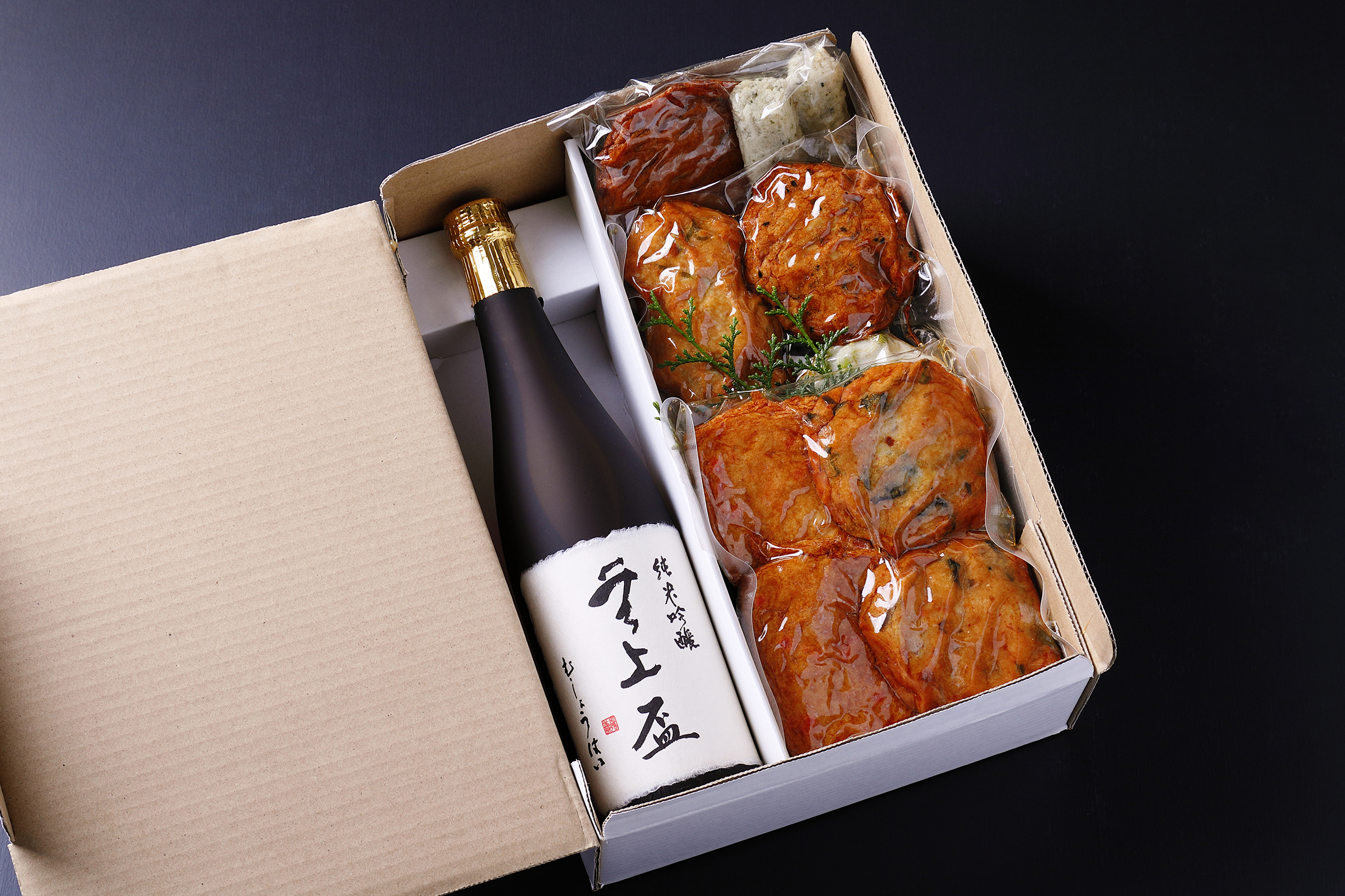 父の日ギフト「倭蔵」は、清酒発祥の地として知られる奈良県の地酒(29種類のうちお好きな1本)と、老舗店が作る味わい豊かな手作りさつま揚げやお惣菜を詰め合わせた、贅沢なギフトセットです。