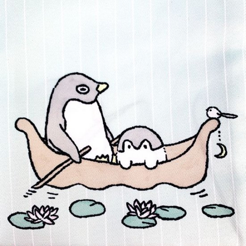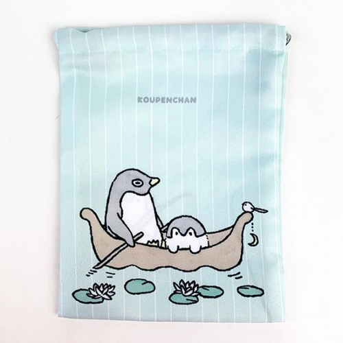 Lサイズ巾着の裏側には、邪エナガさんと一緒に釣りを楽しむコウペンちゃんが描かれています。魚、釣れるかな・・・?
