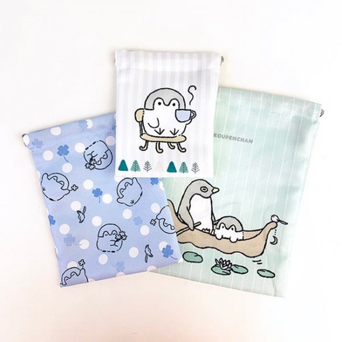 ご紹介するのは、北欧テイストのデザインがほっこりかわいいコウペンちゃんの巾着3点セット。