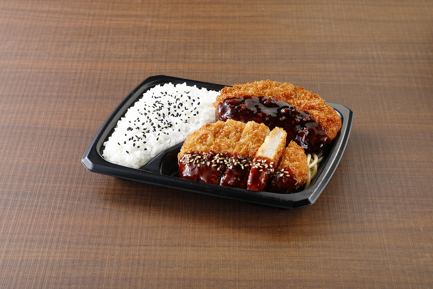 柔らかくジューシーなとんかつと、メンチカツを合わせた、鹿児島県産黒豚の専門店「黒かつ亭」監修の弁当です。とんかつソースは、2種類のソースをブレンドし、酸味と甘みのバランスの良い味わいに仕上げました。