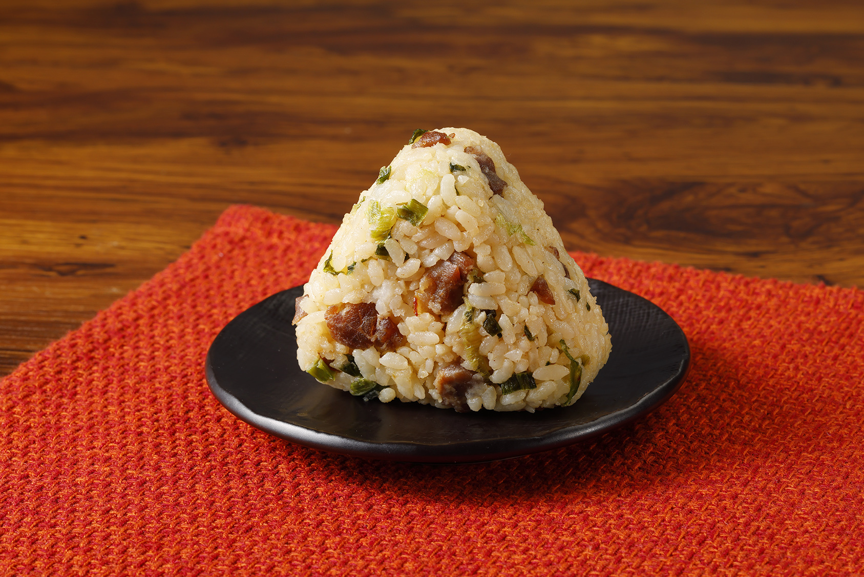 ニンニクの香りが食欲をそそる福岡のB級グルメ「スタミナ鉄板焼」をイメージしたおにぎりです。豚ハラミをニンニクやねぎと共に甘辛の焼肉だれで炒め、チャーハン風ごはんと合わせたスタミナ満点のおにぎりです。