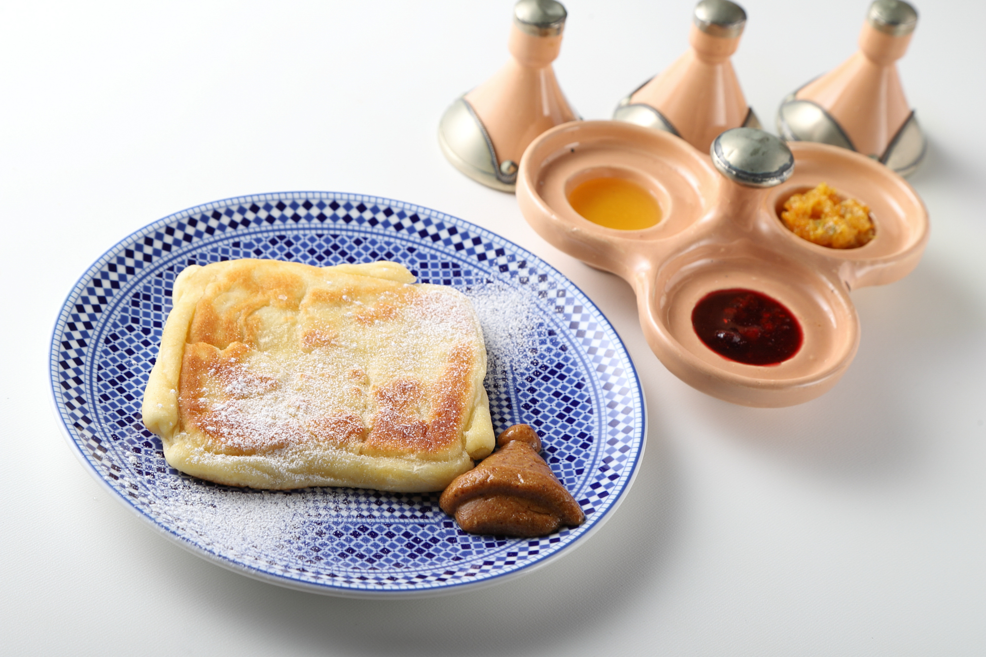 「ムスンメン」はセモリナ粉を折り込んで作るパイ状の生地で、外はサクッと、中はもっちりとした独特の食感が特徴。モロッコに赴いたスタッフが現地で学び、その経験をもとに日本人の嗜好に合うようにアレンジしました。