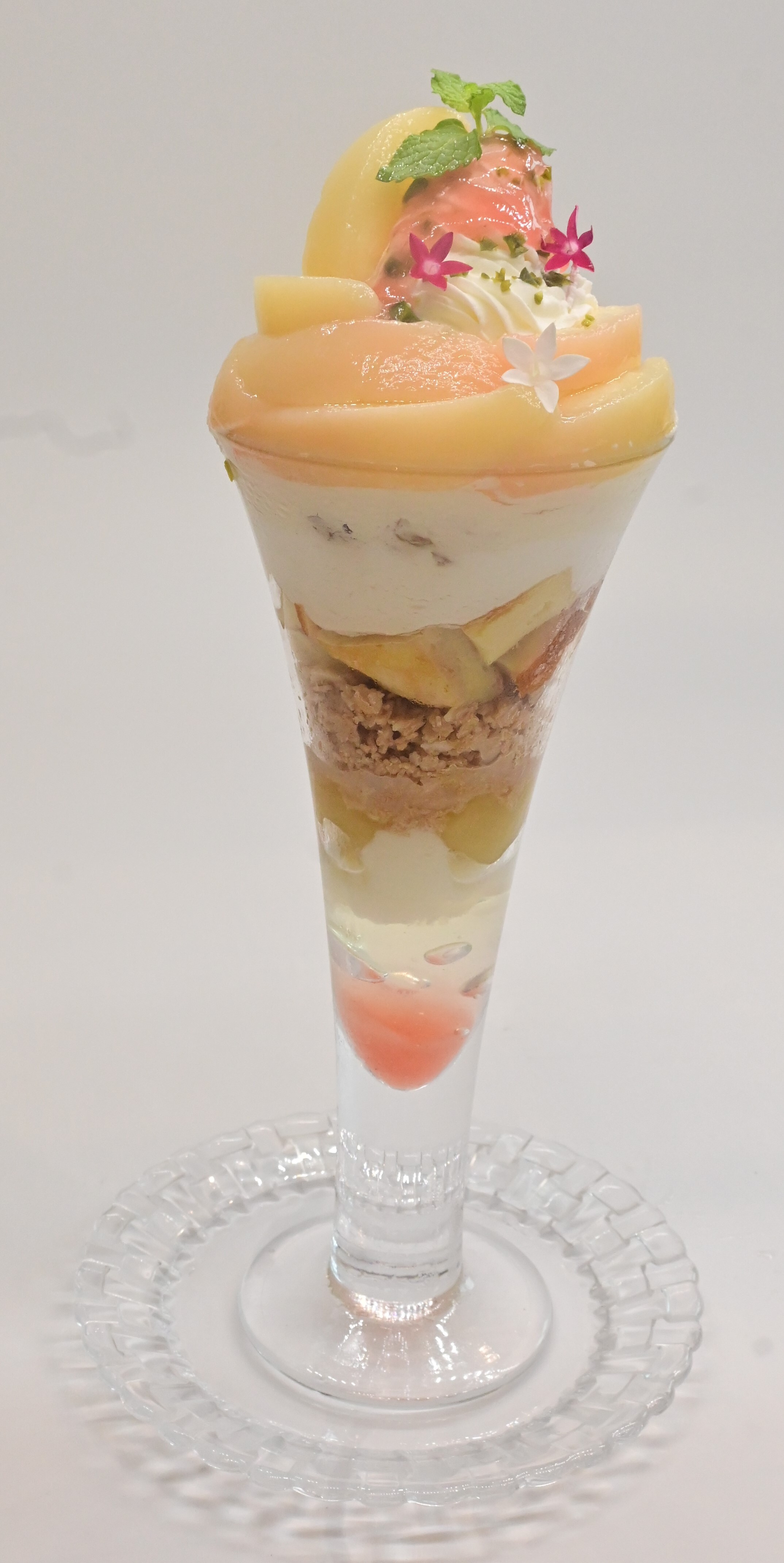 旬の桃を使用した見た目も華やかなパフェ。バラのシロップ入りのパンナコッタがアクセントになり、桃のパフェを更に上品に仕上げてくれます。桃を味わい尽くしたい方におすすめのパフェです。