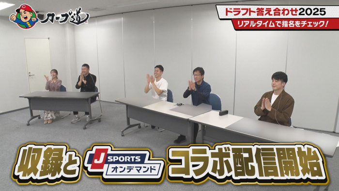 プロへの第一歩がはじまる運命の1日、プロ野球ドラフト会議。開始と同時に番組の収録と、Jスポーツとのコラボ配信がスタートしました。