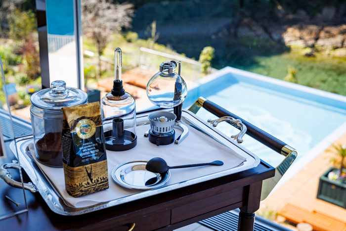 食後のコーヒーはサイフォンで丁寧にお淹れいたします。