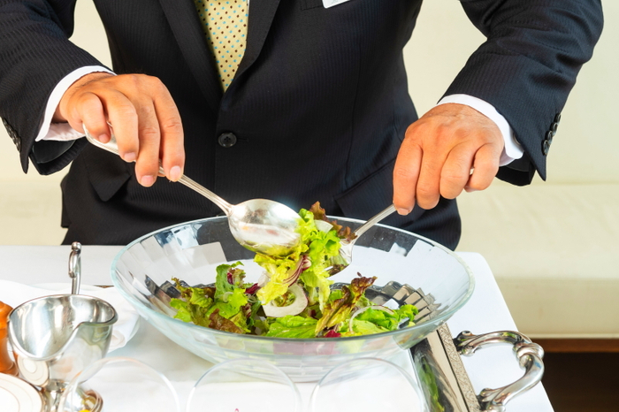 アルコールが苦手な方には、糖度は高いが清々しい西海市特産のみかんと大島名物甘いトマトのフレッシュジュースをご準備。朝食メニューは、「朝からステーキ」「ふわふわオムレツ」「五島灘の魚介類・地元野菜の特別和食」などチョイスでき、新鮮なサラダにドレッシングを合わせるサラダトスをお客様の前で行っております。