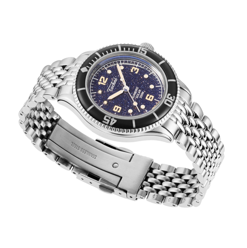構想1年、製作2年の歳月を経て完成した今作は、特殊素材“メテオライト”“アベンチュリン”ダイヤル×200M防水×ソーラームーブメント搭載の“本気のヴィンテージダイバーズウォッチ”。“ヴィンテージとテクノロジーの融合”をテーマに掲げ、1970年代のクラシックダイバーズを現代的に再解釈。ソーラー駆動ながら、素材・機能・美しさのすべてを妥協なく仕上げた1本です。