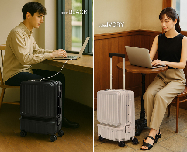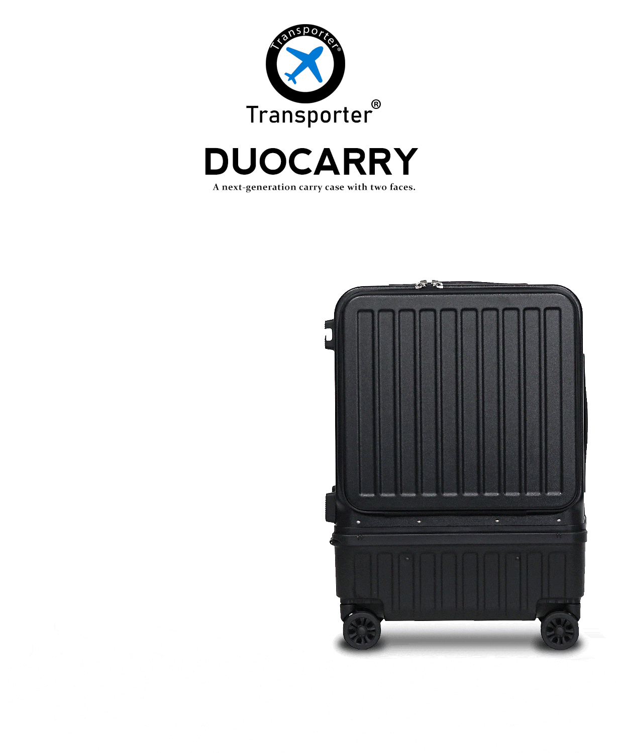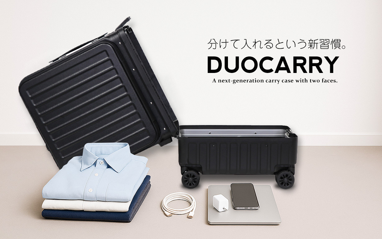 【えっ!そこが開くの?】 旅慣れた人達の声を集めた機内持ち込み対応 スーツケース「DUOCARRY」 応援購入サービスサイト「Makuake」にて販売を開始