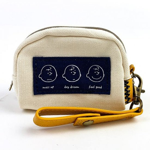 こちらは、フラットな3ポケットポーチです。人気のポケットポーチにも、ついにチャーリーブラウンのデザインがお目見え♡