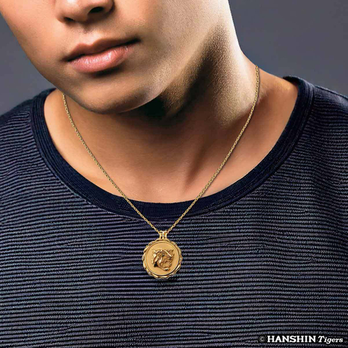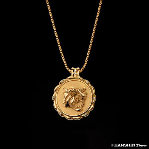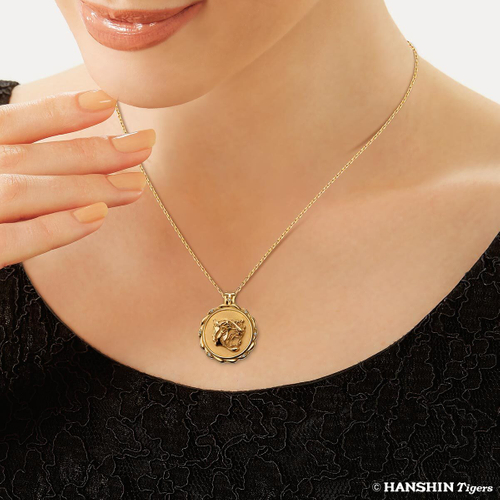黄金に輝くペンダントトップには、立体的な凹凸(レリーフ)でタイガースの「虎」のロゴを表現。