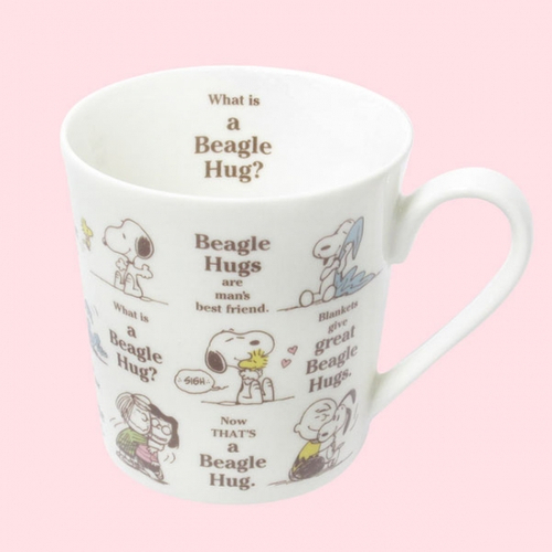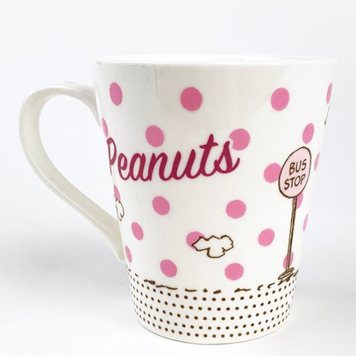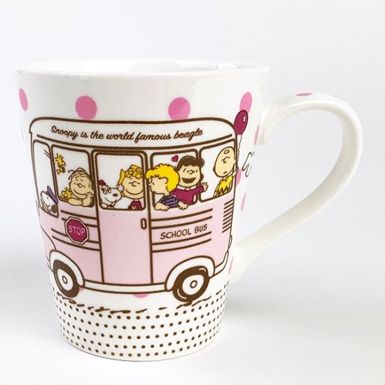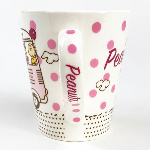 持ち手には、ショッキングピンクでPEANUTSの文字も♪かわいさ満点のマグカップです。
