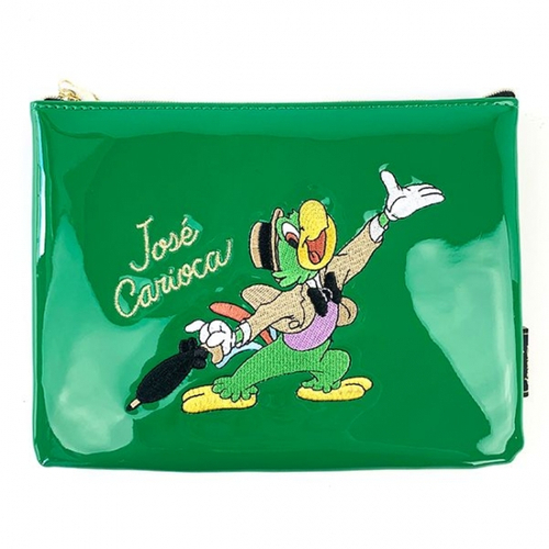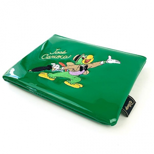 オウムをモチーフにしたディズニーアニメキャラクターのホセ・キャリオカのフラットポーチです。エナメル合皮がとっても高級感があり、コスメやちょっとした小物を収納して持ち運びできます。薄いポーチなのでカバンの中でかさばらないので楽ちんです♪プレゼントにもいいですね~☆