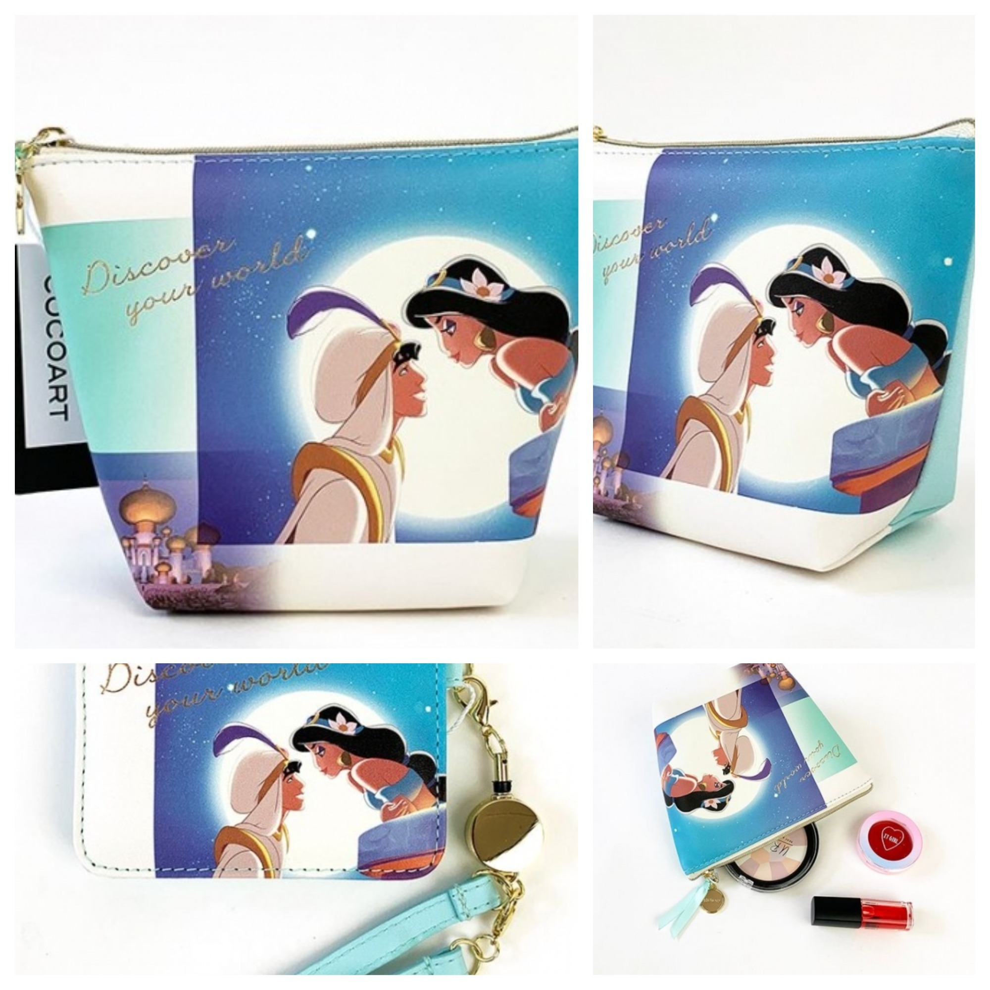 ディズニーのプリンセス達がミニ舟形ポーチになって登場!ゴールドのストラップが付いていて見た目も高級感がありご年齢問わずお使いいただけます◎コスメや小物なども沢山入りますし、バッグにいれてもかさばることがないのですぐに取り出せます♪デザインもとっても女の子らしくてほかのプリンセスのポーチもあるので是非ご覧ください☆プレゼントとしても喜ばれると思います♪