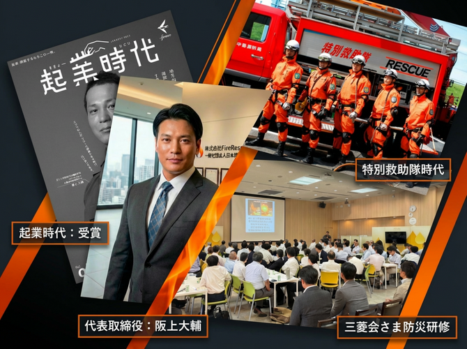 【経歴】2006年〜2022年 消防士(18年間)。東日本大震災現場を含む数百件の救出活動に従事。2022年退職・起業。※詳細経歴は公式サイトへ