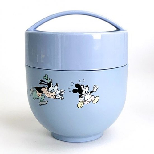 丼や麺類など、汁物の多いランチもOKなランチジャーのご紹介です。ブルーの本体にはミッキーマウスやグーフィーがデザインされていて、男女問わず使えます。