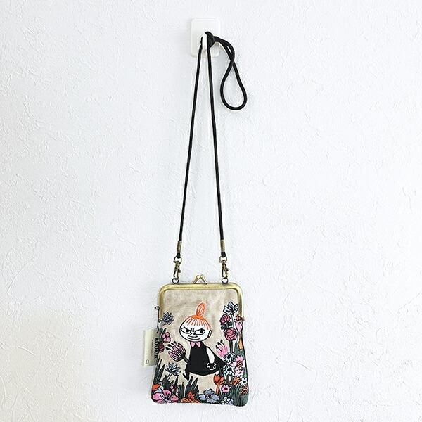 こちらはショルダー紐付きで、手ぶらで使える便利なタイプです。リトルミイとお花がちょっとカラフルだけど、落ち着いるのに、はなやかさをしっかり演出してくれるアイテムです。