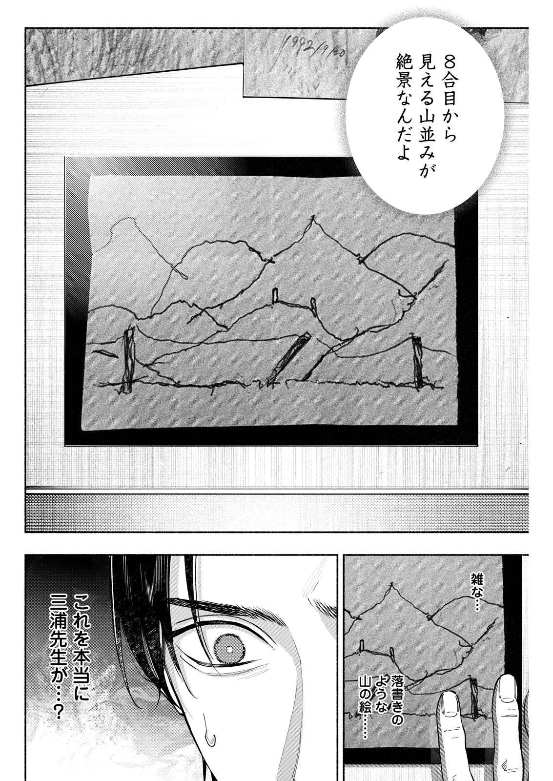 現場には、三浦が最期に描いたと思われるが絵が遺されていた。それは、レシートの裏に描かれたK山8合目から望む山並みのスケッチ。なぜ三浦は死の間際に、絵を遺したのか――。