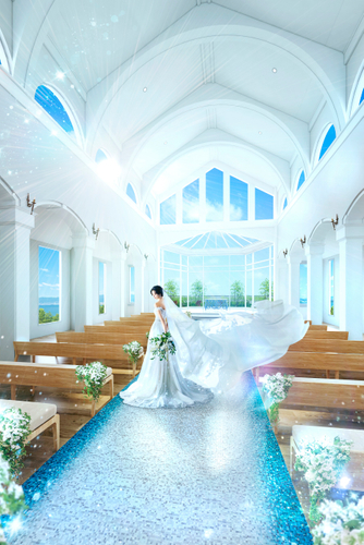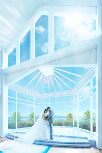全面ガラス張りにすることで青空が更に広がり、降り注ぐ自然光が優しく祝福の時を包み込みます。