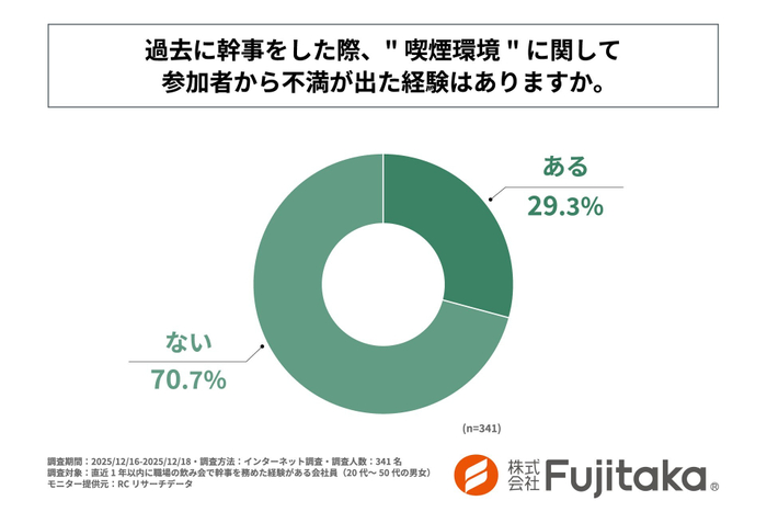 【調査レポート】「完全禁煙」は正解じゃない? 飲み会幹事の約3割が喫煙環境で「不満」を経験、悩める幹事の実態をFujitakaが調査。