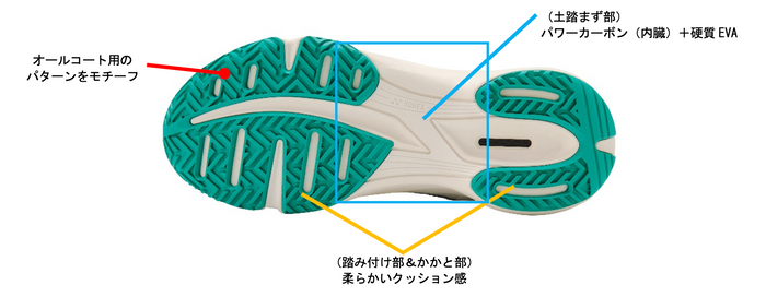 3.ラケットスポーツのテクノロジーを活かしたアウトソール・ミッドソール
