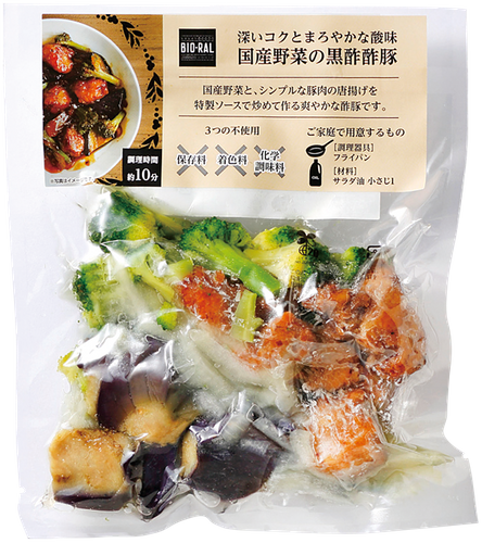 国産野菜とシンプルな豚肉の唐揚げを、特製ソースで炒めて作る爽やかな酢豚のミールキット。特製ソースはほどよい甘みとまろやかな酸味が特徴です。