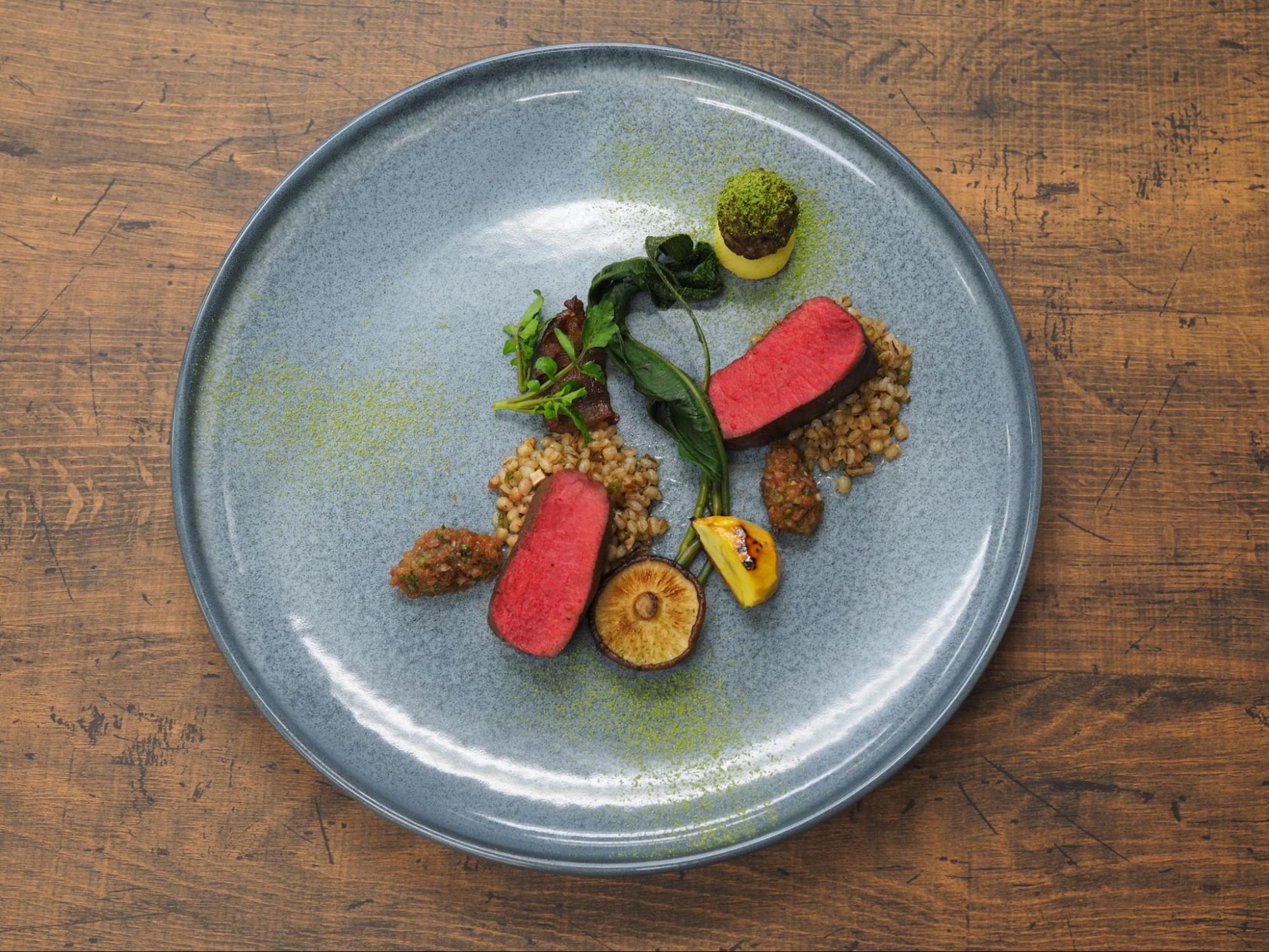 【「鹿ロース肉の炭火焼き -岐阜の恵みと玉味噌チミチュリソース添え-」横井 瑚子さん(学校法人糸菊学園 名古屋調理師専門学校)】