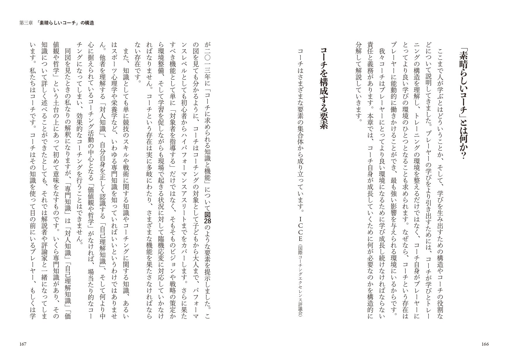 本書は、プレーヤーを目的地に導くために、<人の学びと成長><トレーニング〉〈素晴らしいコーチ〉を構造化した、これまでになかった画期的なスポーツコーチング本。