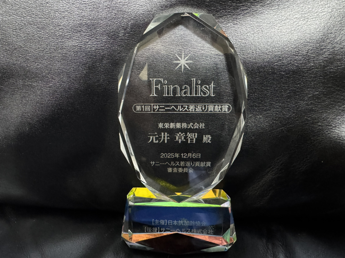 東栄新薬株式会社(所在地:東京都三鷹市、代表取締役:元井 章智)は、2025年12月6日に日本抗加齢協会学術フォーラム内にて、露地栽培アガリクスKA21の優位性とエビデンスなどをプレゼンテーションし、最終審査の結果、第1回サニーヘルス若返り貢献賞 優秀賞を受賞しました。
