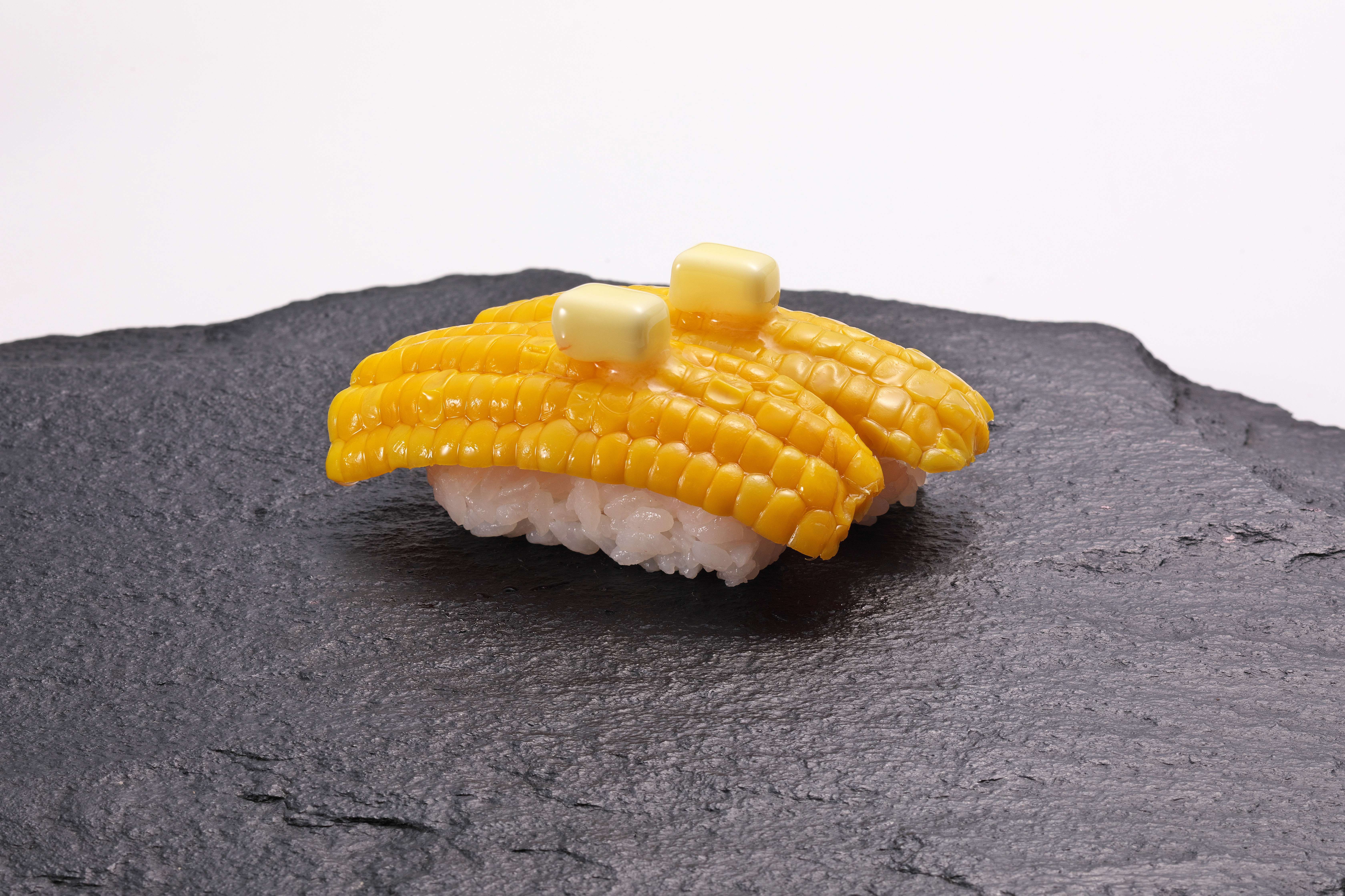 ●甘さが際立つ青森県産とうもろこしを使用した「青森県産 極甘とうもろこしにぎり」。素材本来の甘みを楽しめる、季節限定の一皿です。
