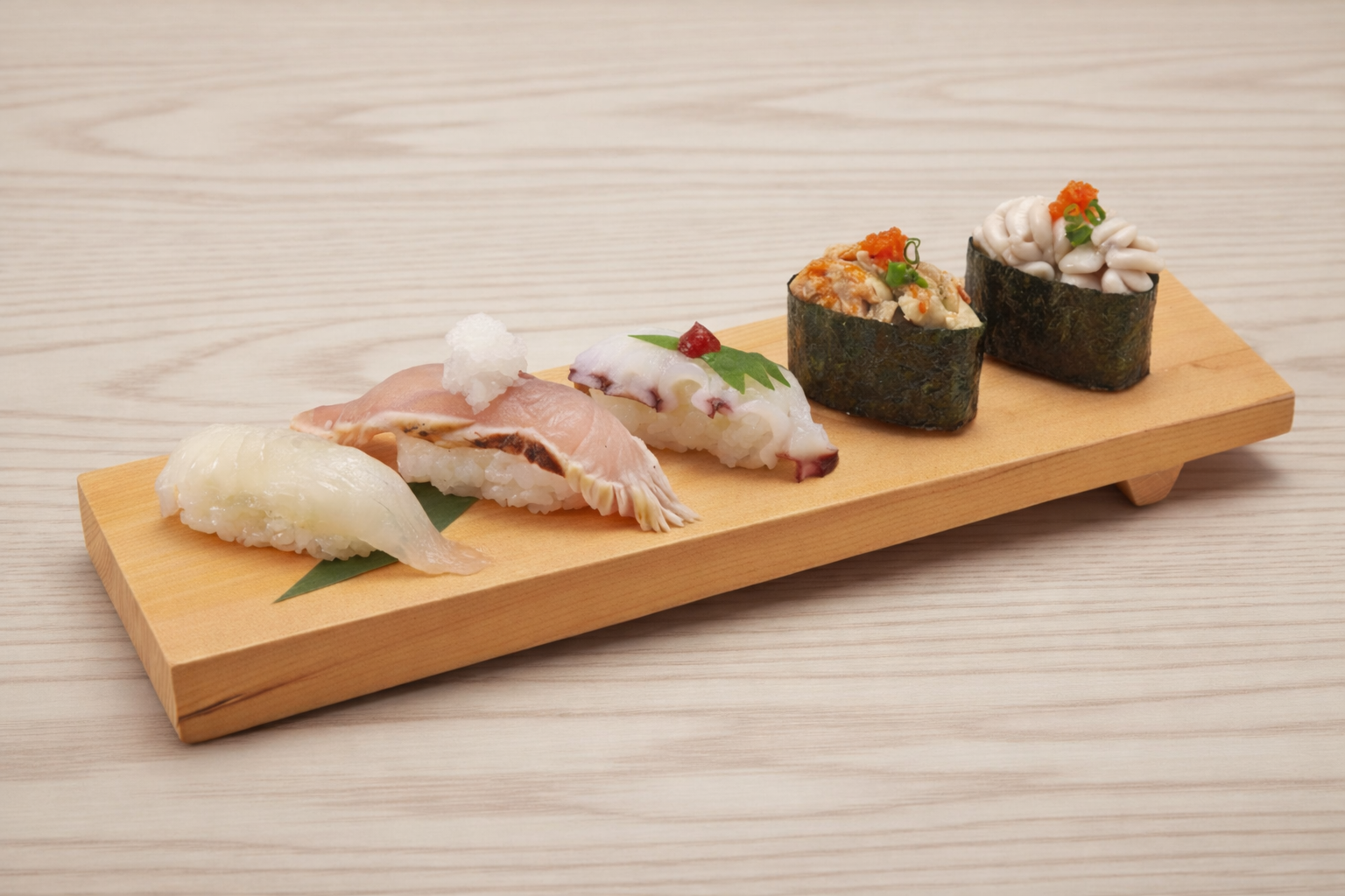 ●寒ひらめ、ぶりたたき、水たこ、あんきも軍艦、寒真だら白子軍艦と、この時期ならではの旨み豊かなネタを盛り込みました。それぞれ異なる食感と味わいを一度に楽しめる、寒の季節ならではの贅沢な一品です。