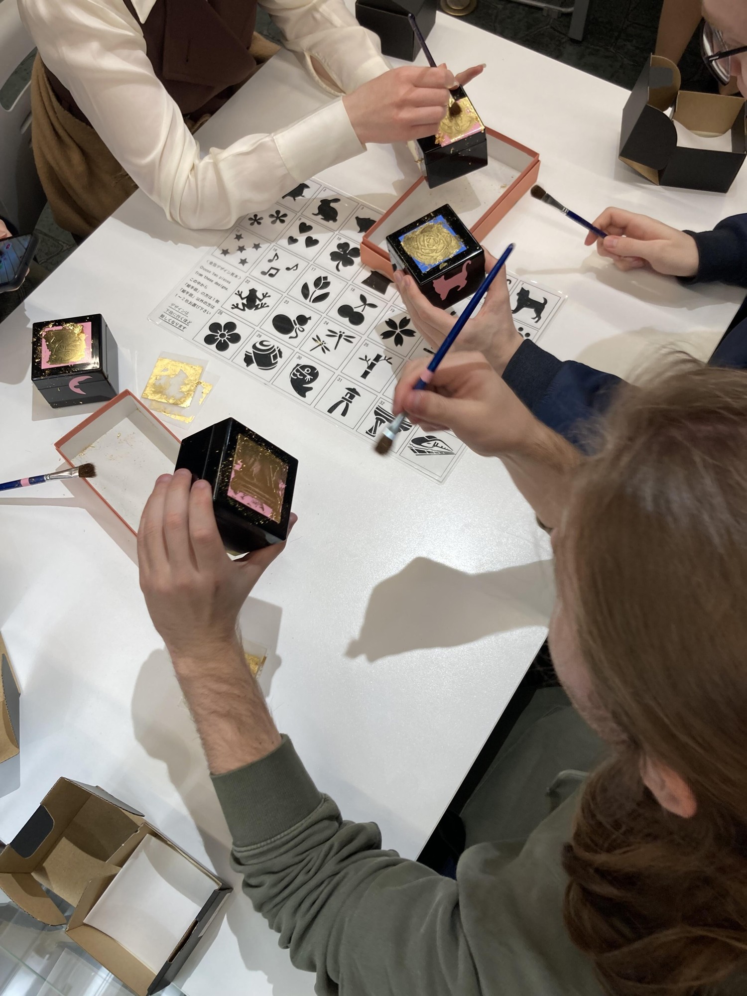 金箔張り体験の様子