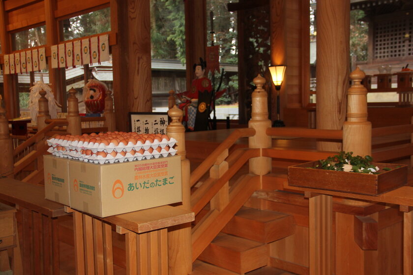古来より「大寒たまご」は、健康や運気を高める縁起の良い食材として珍重されてきました。この「大寒たまご」のみを使用したバウムクーヘンは、1年の最初に食べることで、無病息災や金運上昇をもたらすとされています。今年のバウムクーヘンは、穂高神社でご祈祷を受け、さらに強力なご利益を期待できる逸品です。