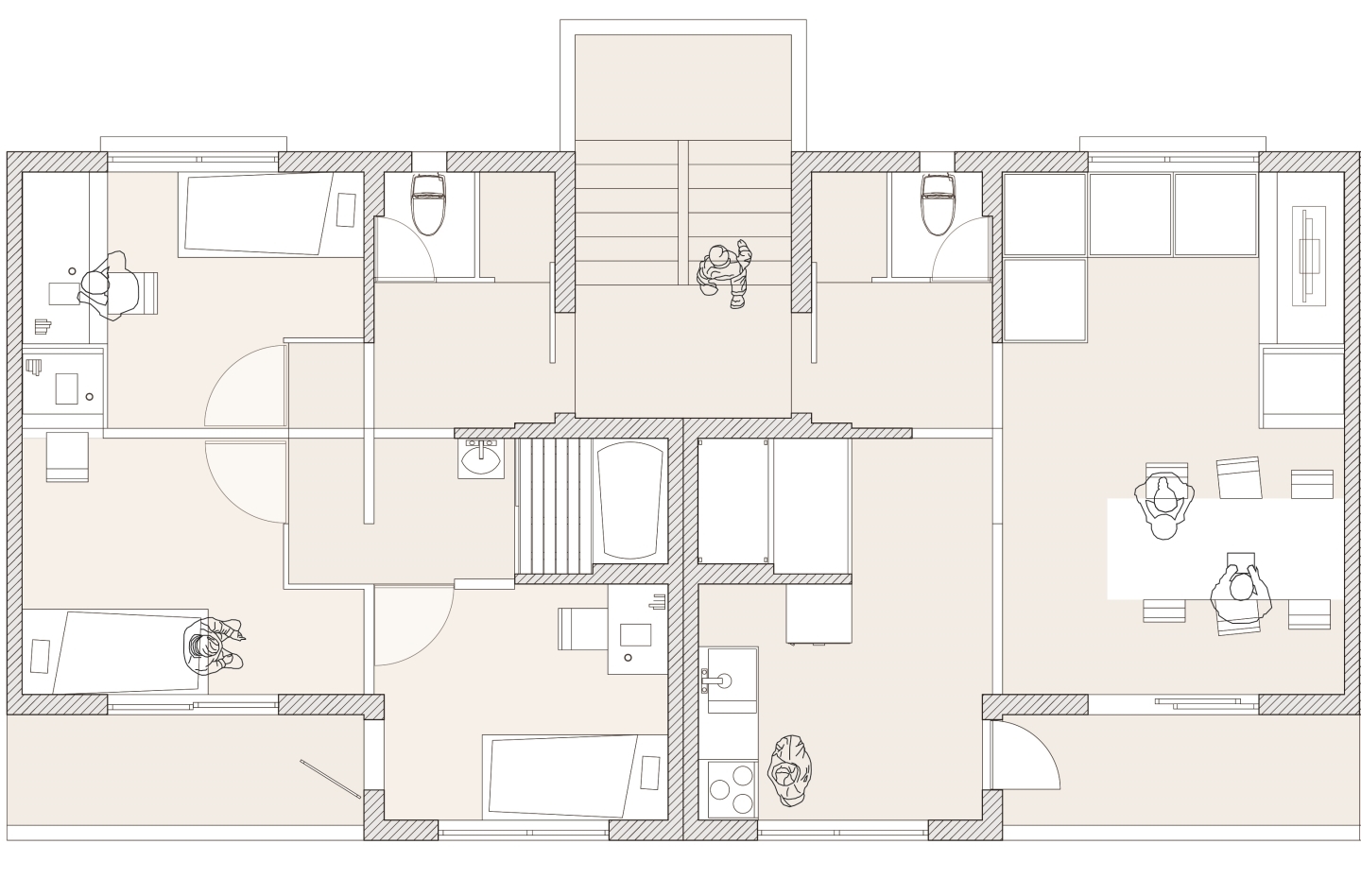 〇住戸は「2人部屋」及び「2戸1プラン(2人部屋)」を計画