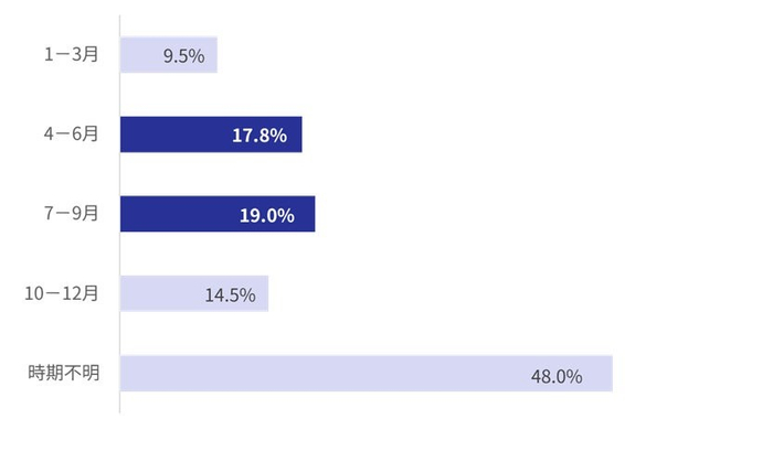 不正利用被害が発生した時期としては、7~9月が19.0%で最多、次いで4~6月が17.8%となり、春から夏にかけて被害が多い傾向が見られました。この傾向は、旅行や大型連休などの消費活動が活発化する時期に一致しており、不正者がこれらのタイミングを狙っている可能性が推測できます。ただし、不正利用は商品の需要によって突発的に発生することも多く、必ずしも特定の時期に限定されるものではありません。