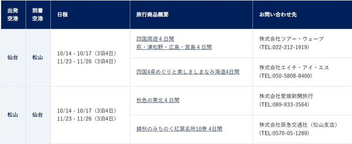 アイベックスエアラインズ株式会社(本社:東京都江東区、以下IBEX)は、東北と四国を結ぶチャーター便を運航いたします。乗継なしでご旅行いただけるこの機会に、是非ご利用ください。